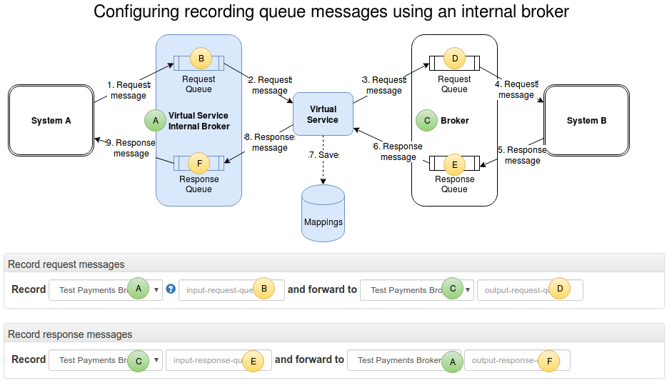 As you can see in the diagram, the recording simply introduces two extra queues, to which the system under test connects, as shown in the diagram below: